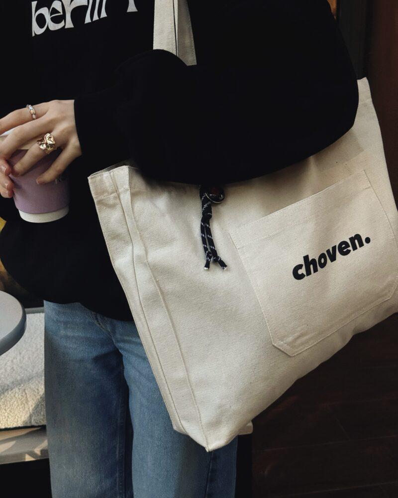 має зручну зовнішню кишеню для дрібниць і лаконічне лого choven, яке додає елегантного акценту